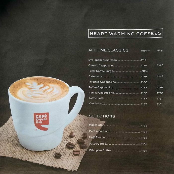 Cost 650 for two people approx exclusive of applicable taxes and charges if any. Cafe menu whats new food beverages combos home delivery nutritional info. Cafe coffee day mumbai cst area menu view the menu for cafe coffee day mumbai on zomato for delivery dine out or takeaway cafe coffee day menu and prices.