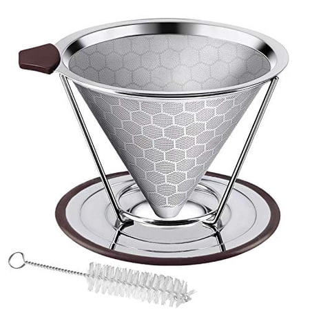 Pour over coffee dripper stainless steel lhs slow drip coffee filter metal cone paperless reusable single cup coffee maker 1 2 cup with non slip cup stand and cleaning brush. The filter allows the boiling water to drip slowly through the grounds and into the cup or pitcher for coffee that. This clever coffee dripper is so light only 154 pounds thats why it is very safe to lift the container even if it has hot water.