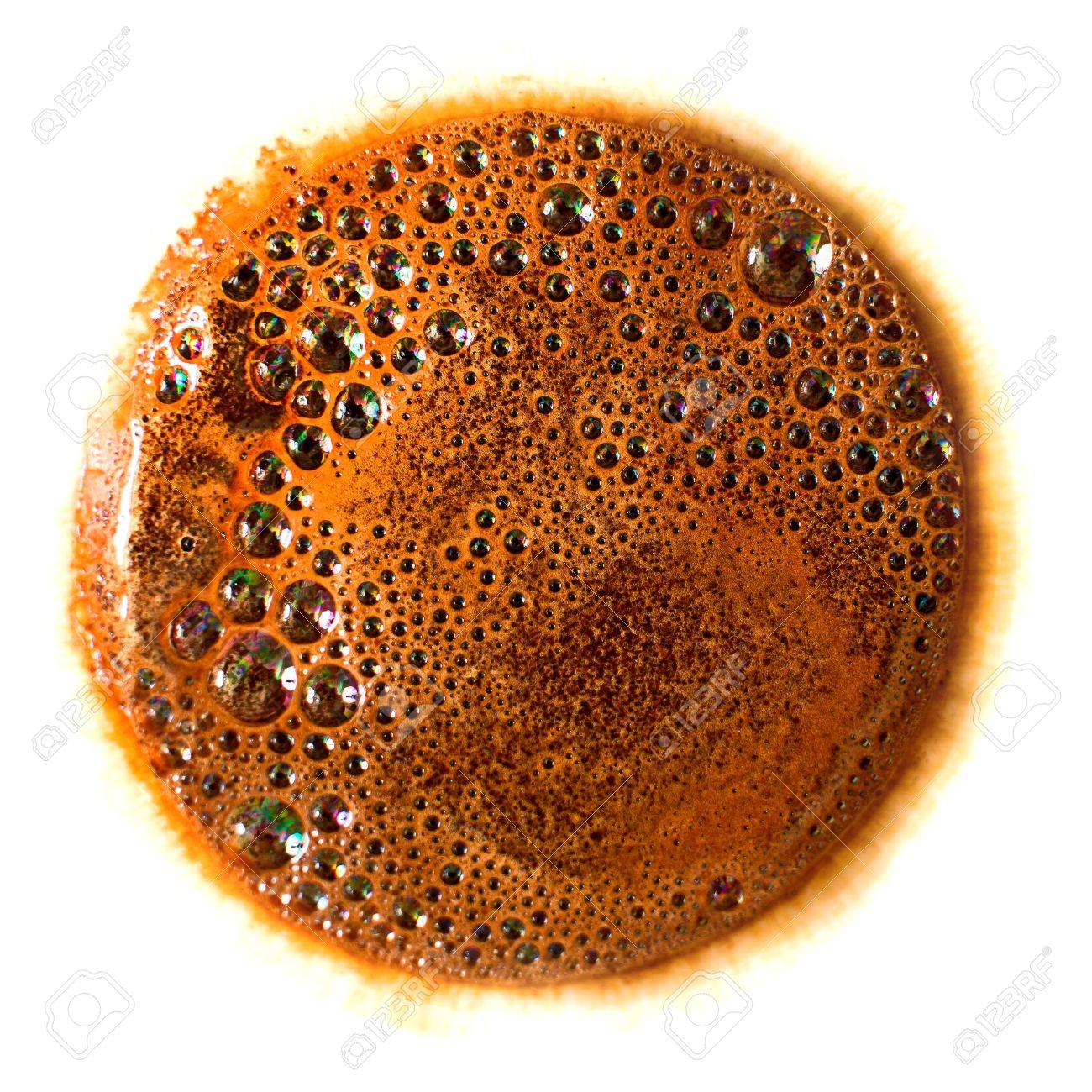 Macro shop of coffee foam. A shot of espresso with a dollop of milk foam. English toffee cappuccino mix 1099.