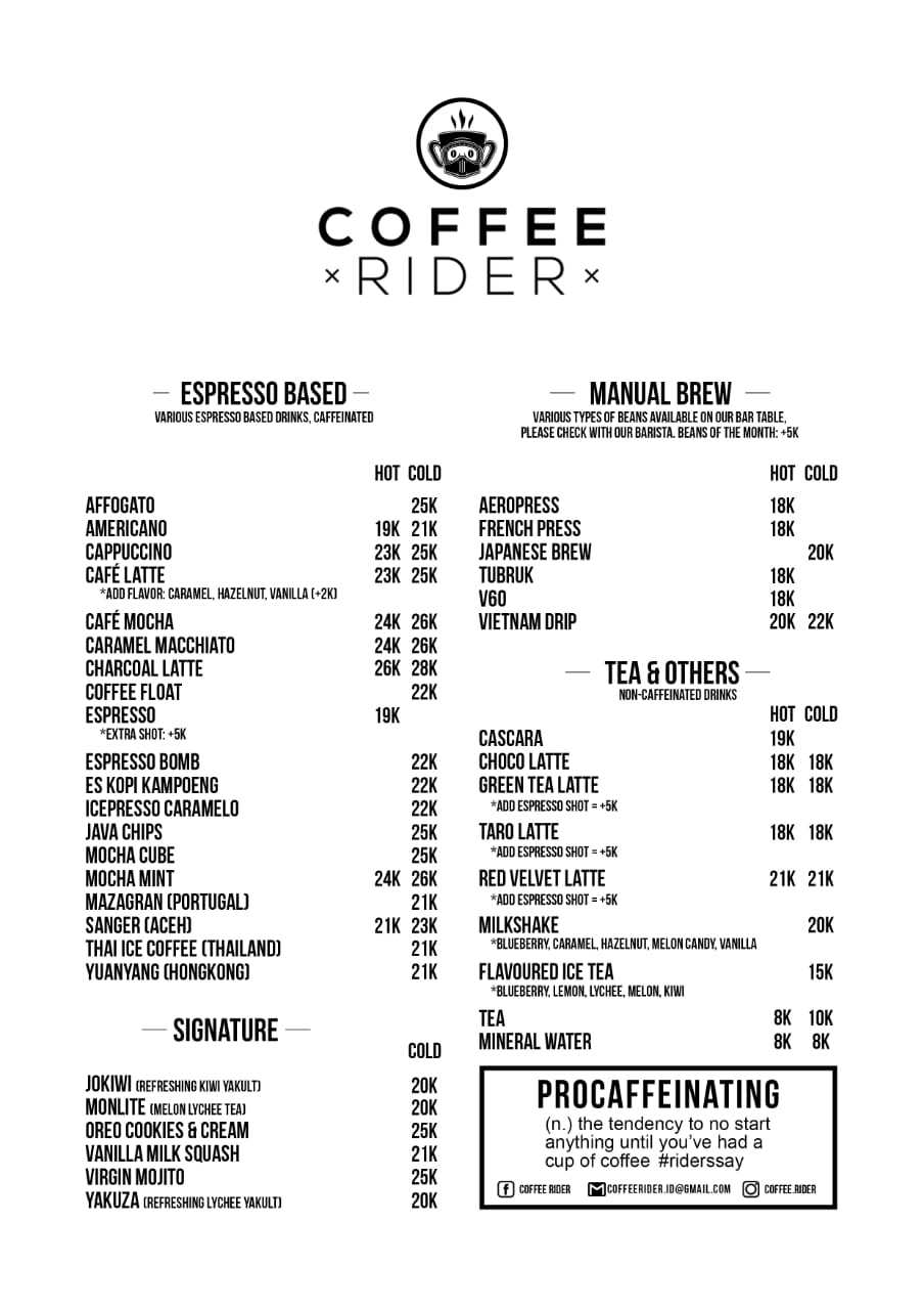 Coffee rider tangerang Indeed recently has been hunted by consumers around us, maybe one of you. Individuals now are accustomed to using the internet in gadgets to see video and image information for inspiration, and according to the name of the post I will talk about about Coffee Rider Tangerang.