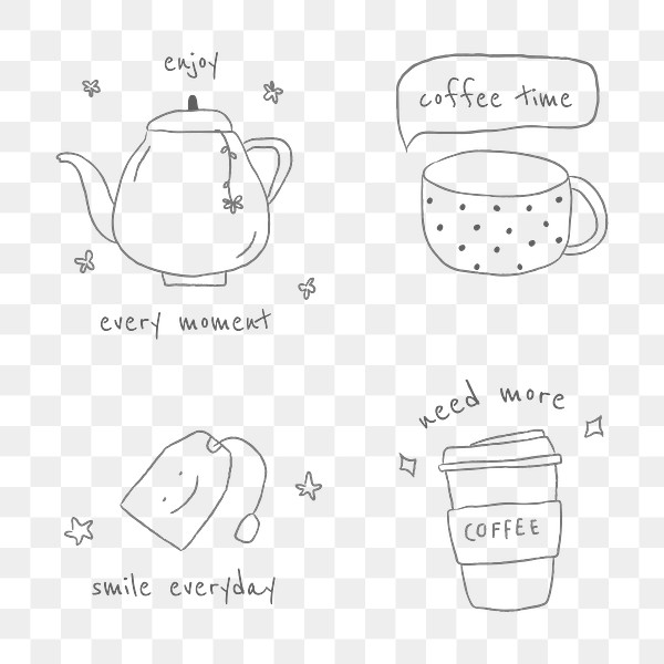 This set contains 13 outline only images and 13 white filled images 26. Jul 17 2020 download free png of cute coffee doodle design element set by marinemynt about logo tea bag brew cafe and cartoon 2372317. Spend 16 across the store and save 25 on your order with coupon code.