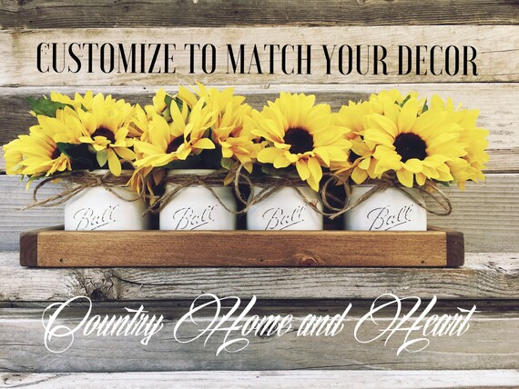 The thankful grateful and blessed text adds a creative. Mkono mason jar centerpiece decorative wood tray with 3 painted jars artificial flowers rustic country farmhouse home decor for herb plants coffee table dining room living room kitchen yellow. Flower holders centerpieces mason jar decor.